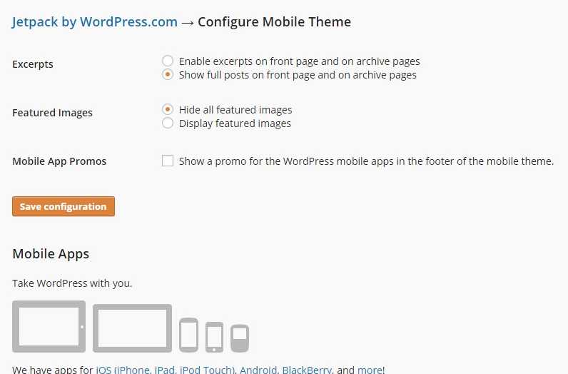 One of them is Jetpack’s Mobile Theme. All you need to do is activate and configure it: