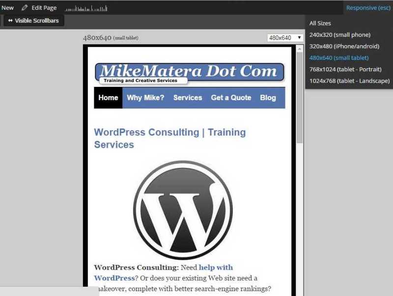 Responsive Page Tester won’t display your site in true mobile form if you’re using either the WP Touch or Jetpack Mobile plugins. Those plugins will only generate mobile-friendly pages on phones or tablets. Responsive Page Tester is useful for when you’re already using a mobile-friendly theme and you want to tweak its design.
